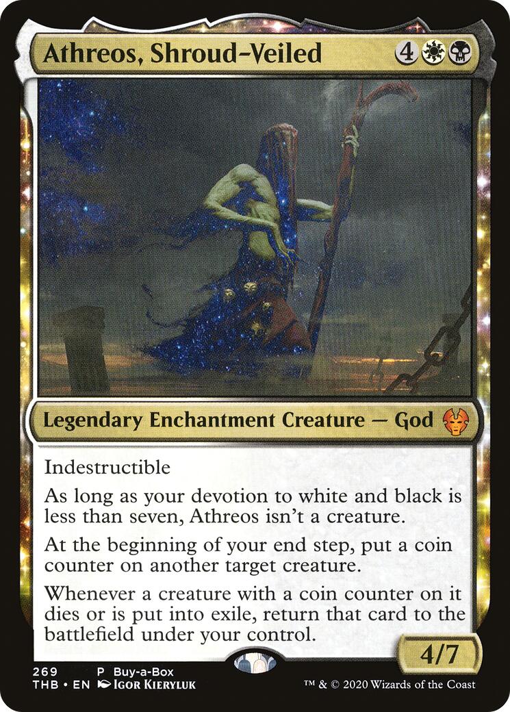 As long as your devotion to white and black is less than seven, Athreos isn’t a creature.